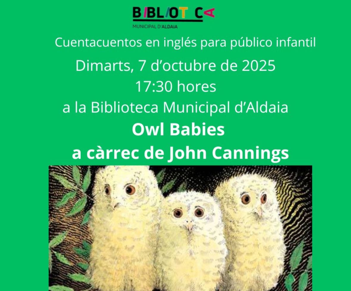 Contacontes en anglés per a públic infantil – Owl Babies a càrrec de John Cannings.
